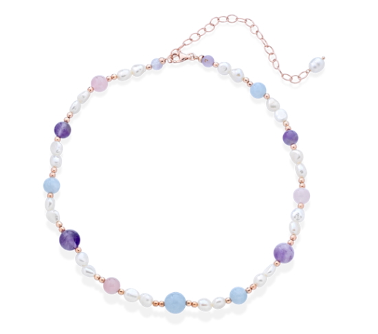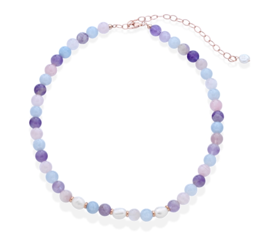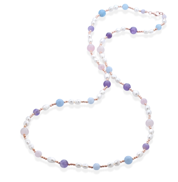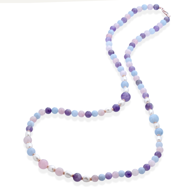 QUARZO ROSA, AMETISTA, ACQUAMARINA, PERLE DI FIUME